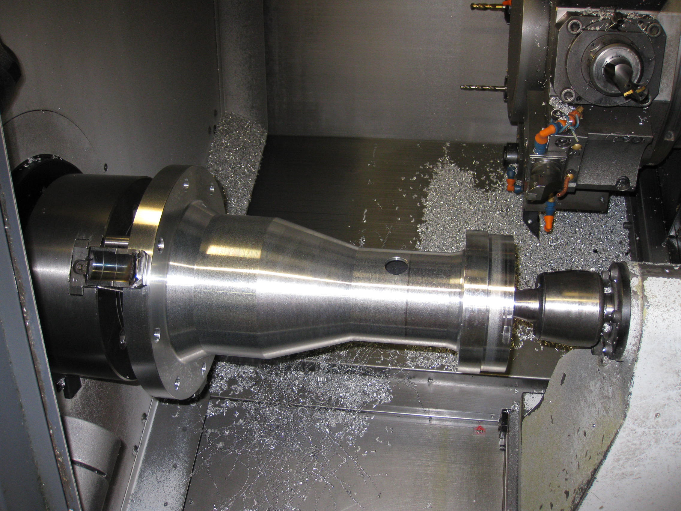 - Grote dimensies zijn mogelijk bij draaiwerk: tot een maximale diameter van 450 mm en lengtes tot een meter.